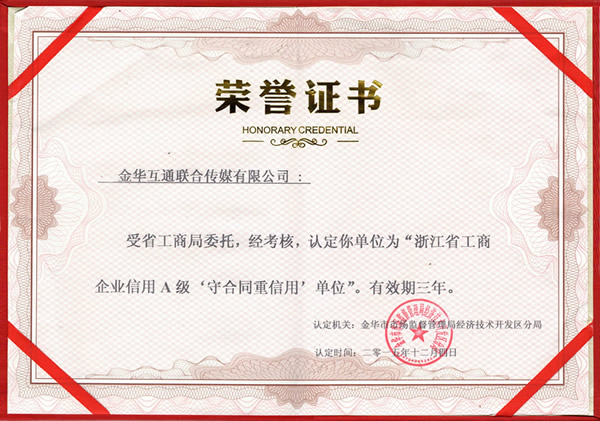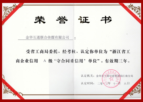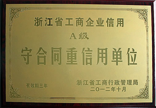 浙江省工商企业信用A级守合同重信用单位
