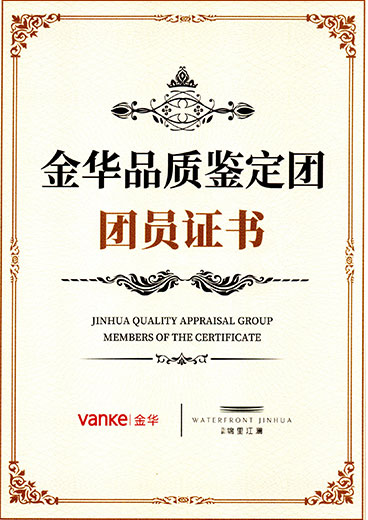 万科金华品质鉴定团团员证书